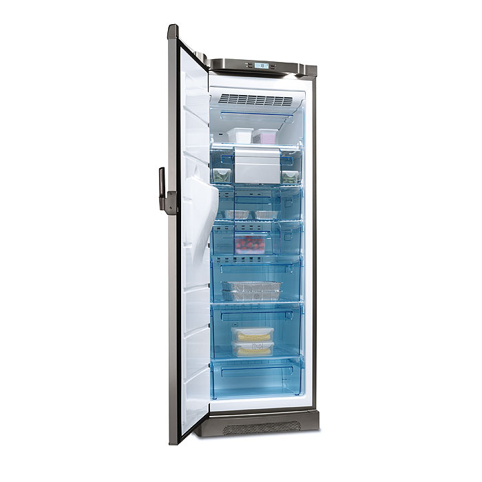 Electrolux EUFG29800X. Тип корпуса: Отдельностоящий, Тип: Вертикальный, Цвет товара: Cеребряный. Полезная емкость морозильной камеры: 252 л, Максимальная емкость морозильника: 279 л, Уровень шума: 41 дБ. Годовое потребление энергии: 324 кВт·ч. Ширина: 595 мм, Глубина: 650 мм, Высота: 1800 мм