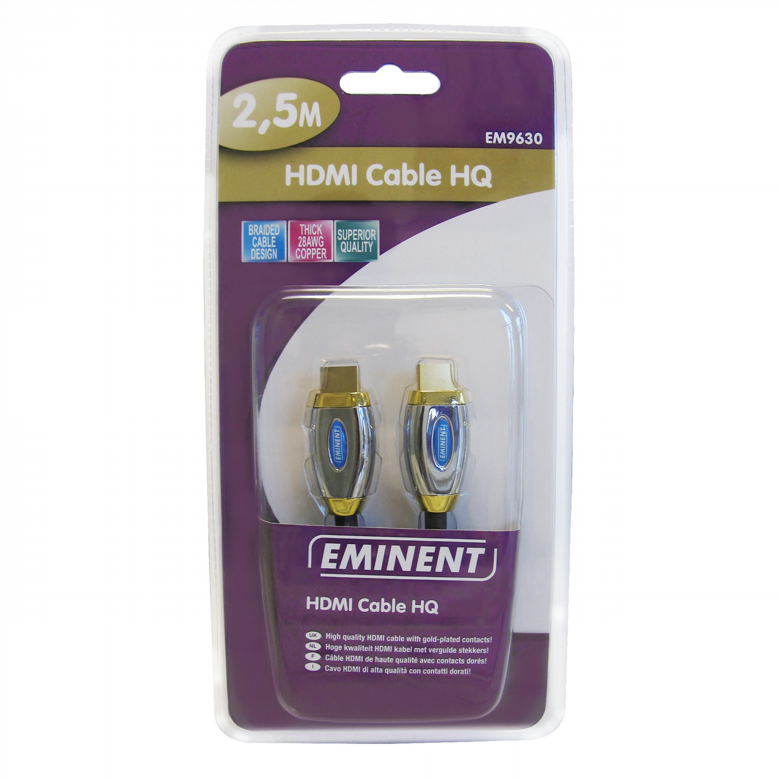 Eminent HDMI cable. Длина кабеля: 2,5 м, Разъем 1: HDMI, Разъем 2: HDMI