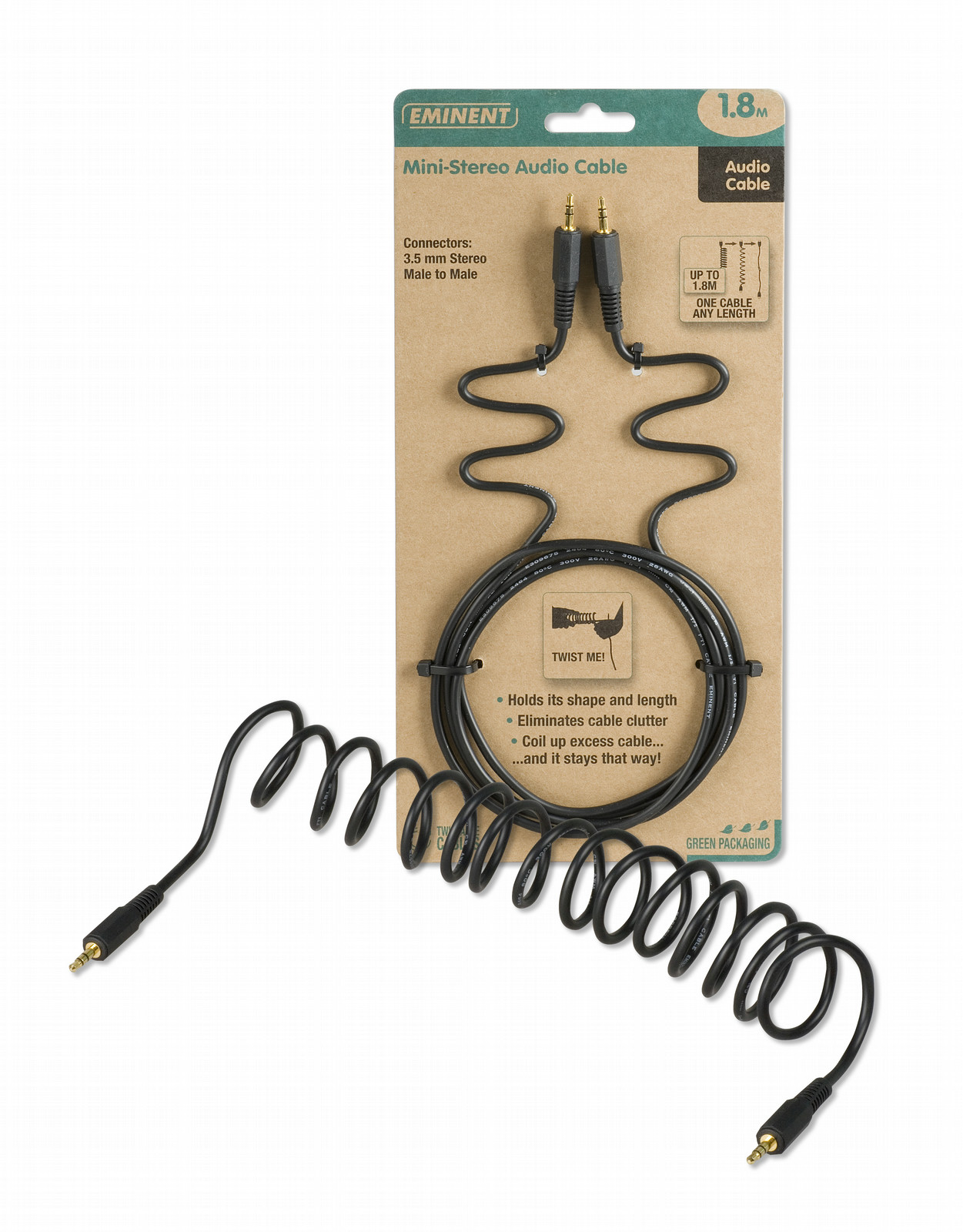 Eminent Twistable Mini-Stereo - 1.8m. Длина кабеля: 1,8 м, Разъем 1: 3,5 мм, Разъем 2: 3,5 мм