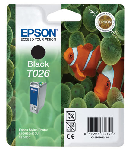 Epson T026. Цвета печати: Черный, Совместимые продукты: Epson Stylus Photo 810 Epson Stylus Photo 830 Epson Stylus Photo 830U Epson Stylus Photo 925 Eps, Технология печати: Струйный. Ширина: 246 мм, Глубина: 116 мм, Высота: 145 мм