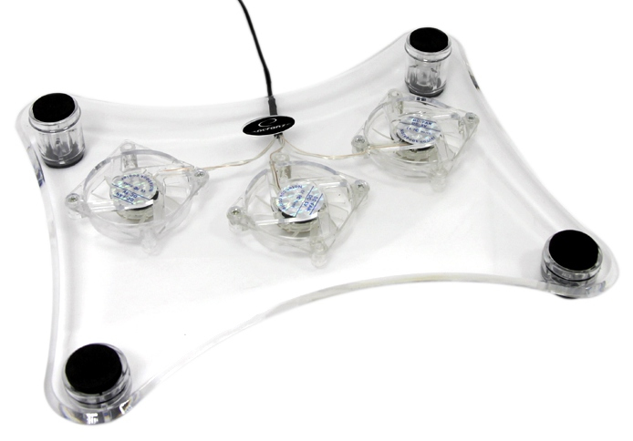 Esperanza EA107. Цвет товара: Прозрачный, Максимальный совместимый размер экрана ноутбука: 39,6 см (15.6"). Количество охлаждающих вентиляторов: 3 шт, Диаметр вентилятора: 6 см. Ширина: 285 мм, Глубина: 235 мм, Высота: 25 мм