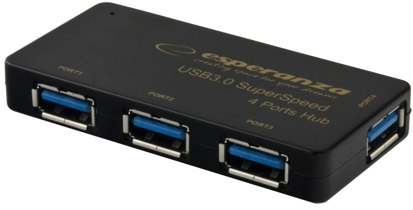 Esperanza EA136. типы подключения хаба: USB 3.0 (3.1 Gen 1) Type-A. Скорость передачи данных: 5000 Мбит/с. Цвет товара: Черный