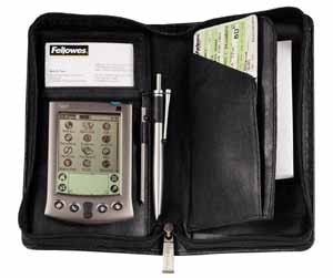 Fellowes PDA Travel Portfolio. Цвет товара: Черный, Отделения: Compartments for credit cards, a pen, stylus, and a notepad, Совместимость: All major Palm and Windows CE devices