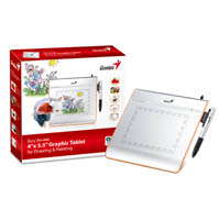Genius EasyPen i405. Технология подключения: Проводная, Рабочая зона: 102 x 140 мм, Интерфейс устройства: USB. Скорость передачи (перо): 100 точек/с. Минимальный процессор: Pentium 233 +. Тип батареек: AAA. Вес планшета: 340 г