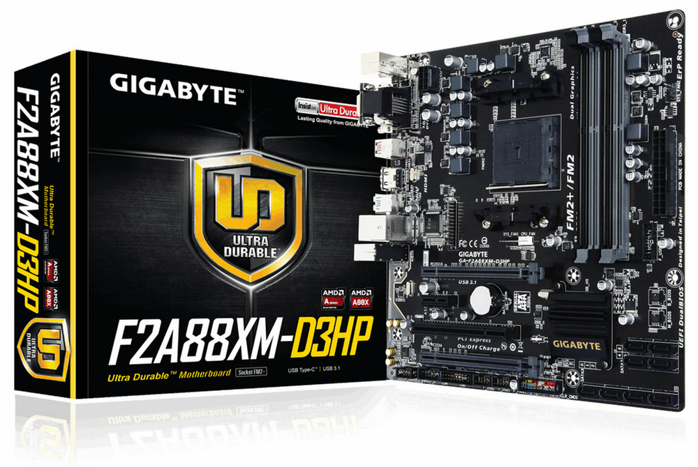 Gigabyte GA-F2A88XM-D3HP. Поддерживаемые типы памяти: DDR3-SDRAM, Тип слотов памяти: DIMM, Поддерживаемые частоты памяти: 1333,1600,1866,2133,2400 МГц. Семейство процессоров: AMD, Совместимые серии процессоров: Athlon, Сокет процессора: Socket FM2+. Поддерживаемые интерфейсы носителя: SATA. Тип Ethernet интерфейса: Гигабитный Ethernet. Комплектующие для: ПК, Семейство чипсета материнской платы: AMD, Чипсет материнской платы: A88X
