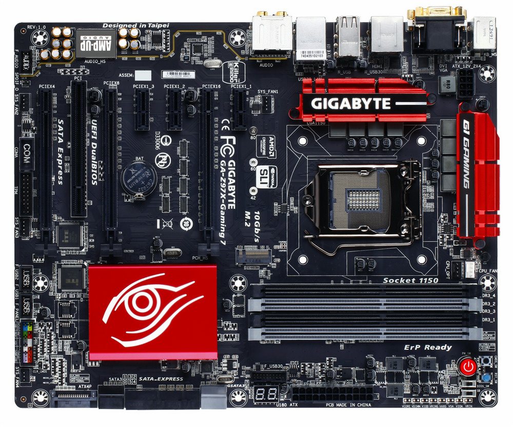 Gigabyte GA-Z97X-Gaming 7. Поддерживаемые типы памяти: DDR3-SDRAM, Тип слотов памяти: DIMM, Поддерживаемые частоты памяти: 1333,1600,1800,1866,2000,2133,2200,2400,2600,2666,2800,2933,3000 МГц. Семейство процессоров: Intel, Совместимые серии процессоров: Celeron,Core i3,Core i5,Core i7,Pentium, Сокет процессора: LGA 1150 (Socket H3). Поддерживаемые интерфейсы носителя: Serial ATA III. Версия HDMI: 1.4a. Тип Ethernet интерфейса: Gigabit Ethernet