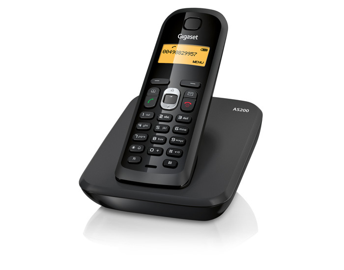 Gigaset AS200. Тип: DECT телефон, Максимальная дальность в помещении: 50 м, Максимальная дальность вне помещения: 300 м. Тип крепления: Стена, Цвет товара: Черный. Вместимость телефонной книги: 60 записей. Отображение количества строк: 3 линий, Цвет подсветки: Янтарь, Диагональ экрана: 3,81 см (1.5"). Тип батареек: AAA, Время работы в режиме разговора: 20 ч, Время работы в режиме ожидания: 220 ч