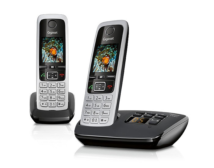 Gigaset C430A Duo. Тип: DECT, Время записи: 30 мин, Максимальная дальность в помещении: 50 м. Тип крепления: Стол / Стена, Цвет товара: Черный, Cеребряный. Вместимость телефонной книги: 200 записей. Дисплей: TFT, Разрешение экрана: 128 x 160 пикселей, Цвет подсветки: Разный. Тип батареек: AAA, Время работы в режиме разговора: 14 ч, Время работы в режиме ожидания: 300 ч