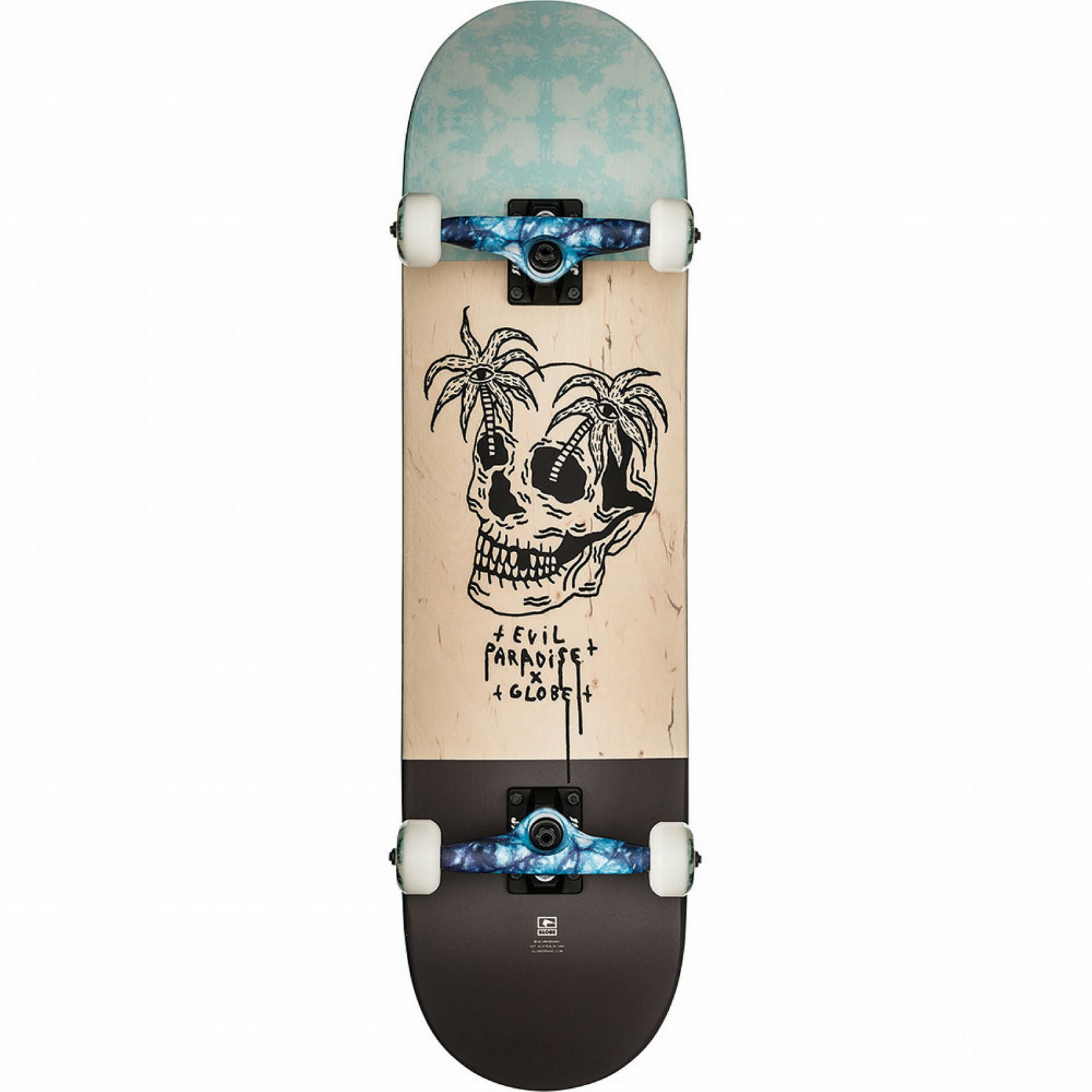 Globe Glb-Evil Paradise Complete. Тип продукта: Skateboard (classic), Цвет товара: Черный, Бирюзовый, Деревянный, Материал доски: Maple wood. Длина: 80,6 см
