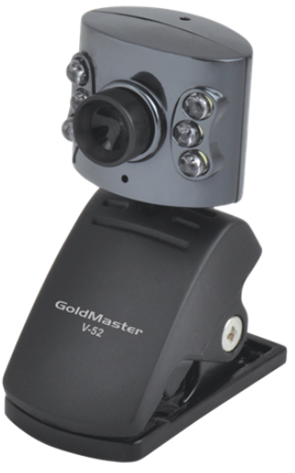 GoldMaster V-52. Максимальная частота кадров: 30 кадр/с, Разрешение при скорости захвата: 320×240@30fps, 640x480@15fps, Максимальное разрешение изображения: 800 x 600 пикселей. Интерфейс: USB 2.0, Цвет товара: Черный, Тип сенсора: CMOS