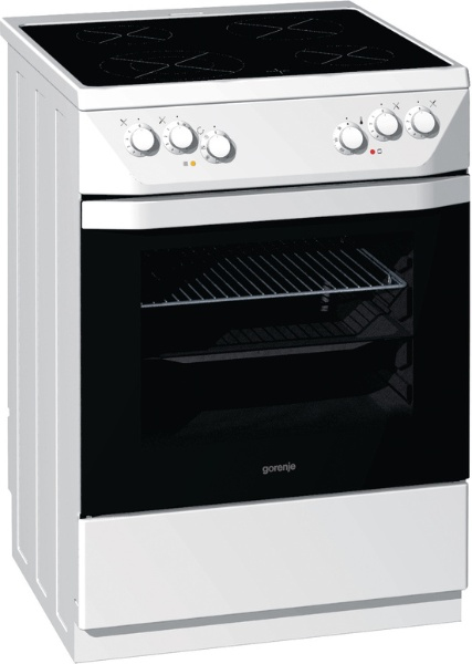 Gorenje EC66120BW. Тип продукта: Отдельностоящий, Цвет товара: Белый, Тип управления: Вращающийся. Тип варочной поверхности: Ceramic hob, Тип верхней поверхности: Стеклокерамическая, Burner/cooking zone 2 type: Средний. Oven power source: Электрический, Oven gross capacity: 65 л, Общий объем духовки(ок): 65 л. Класс энергоэффективности: A, Потребление энергии (обычное приготовление): 0,87 кВт·ч, Входящее напряжение сети: 230 В. Ширина: 600 мм, Глубина: 600 мм, Высота: 850 мм