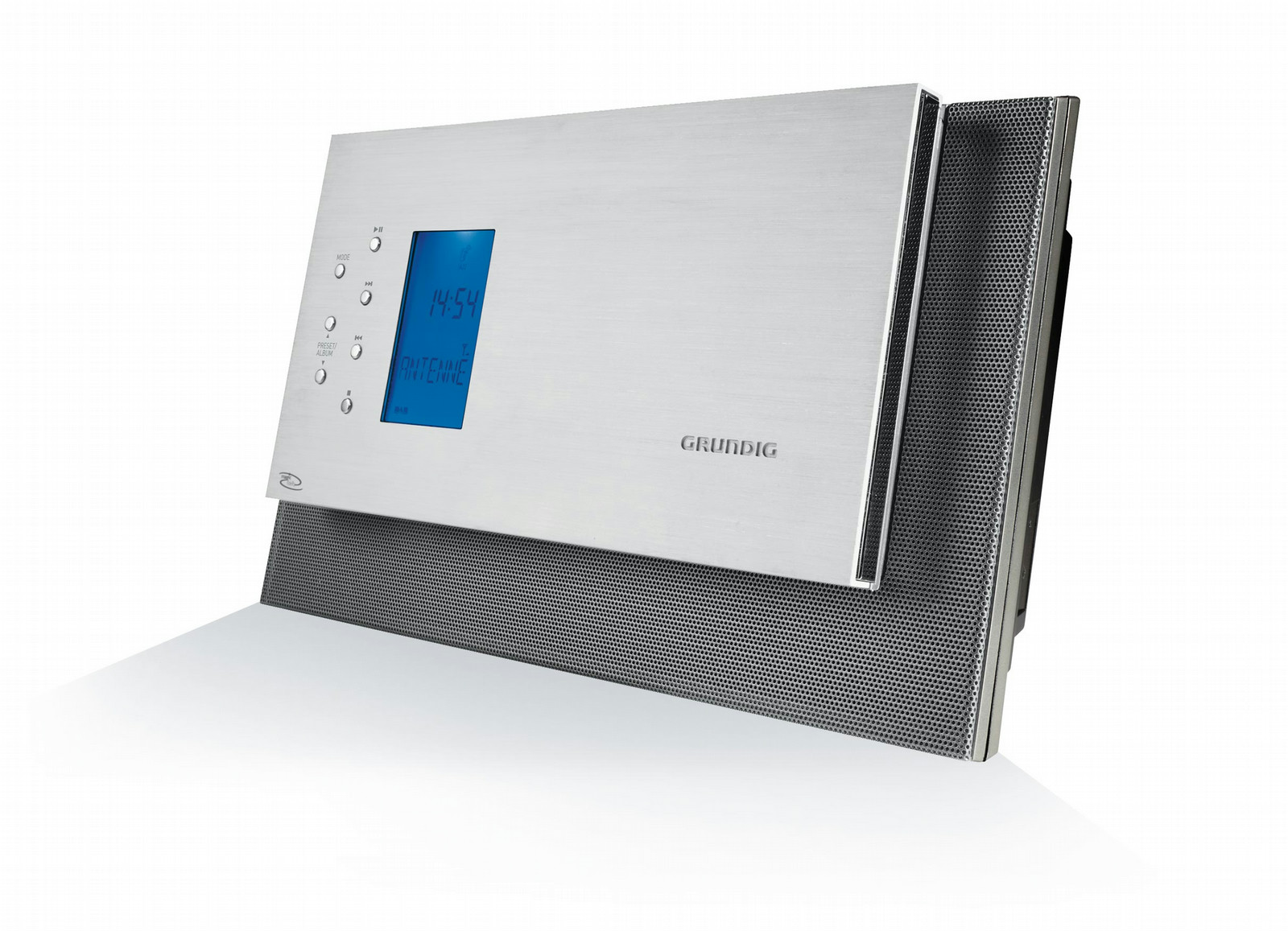 Grundig BT 1000 DAB+. Тип: Home audio micro system, Цвет товара: Хром, Число дисков: 1 дисков. Номинальная RMS-мощность: 3,1 Вт, PMPO мощность: 80 Вт. Поддерживаемые диапазоны радио: DAB+,VHF. Порт подключения наушников: 3,5 мм. Поддерживаемые форматы аудио: MP3,WMA, Совместимые карты памяти: Memory Stick (MS), MMC, SD, Поддерживаемые типы дисков: CD-R,CD-RW