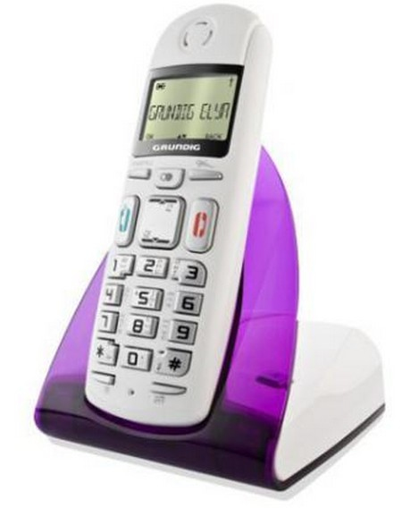 Grundig Elya. Тип: DECT телефон, Максимальная дальность в помещении: 50 м, Максимальная дальность вне помещения: 300 м. Тип крепления: Стол, Цвет товара: Пурпурный, Белый. Вместимость телефонной книги: 80 записей. Дисплей: ЖК, Отображение количества строк: 3 линий, Цвет подсветки: Синий. Время работы в режиме разговора: 10 ч, Время работы в режиме ожидания: 100 ч, Технология батареи: Никель-металл-гидридный (NiMH)