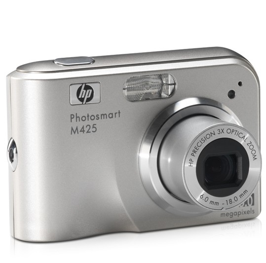 HP M425, Photosmart. Мегапиксели: 5,25 МП, Размер сенсора изображения: 1/2.5", Тип сенсора: CCD. Оптическое увеличение: 3x, Цифровой зум: 7x, Фокусное расстояние: 6,25 - 17,25 мм. Чувствительность по ISO: 100, 200, 400, Авто. Режимы вспышки: Авто, Выключенная вспышка, Flash on, Cнижение эффекта красных глаз. Максимальное разрешение видео: 320 x 240 пикселей, Частота кадров Motion JPEG: 20 кадр/с