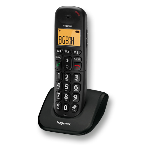 Hagenuk BIG 80H. Тип: DECT телефон, Тип сигнала вызова: Полифонический. Цвет товара: Черный. Регулятор громкости: Цифровой, Персонификация: Меню. Вместимость телефонной книги: 20 записей. Дисплей: ЖК, Цвет подсветки: Оранжевый
