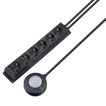 Hama 00108851. Количество розеток: 6 розетка(и), Типы розеток: Тип F. Длина кабеля: 1,5 м. Цвет товара: Черный. Материал: Пластик