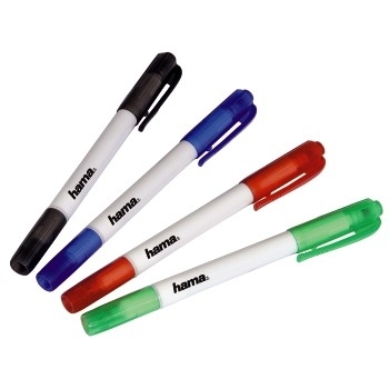 Hama CD/DVD Pens, 4 pcs./set, double-ended S/L, black, blue, red, green маркер