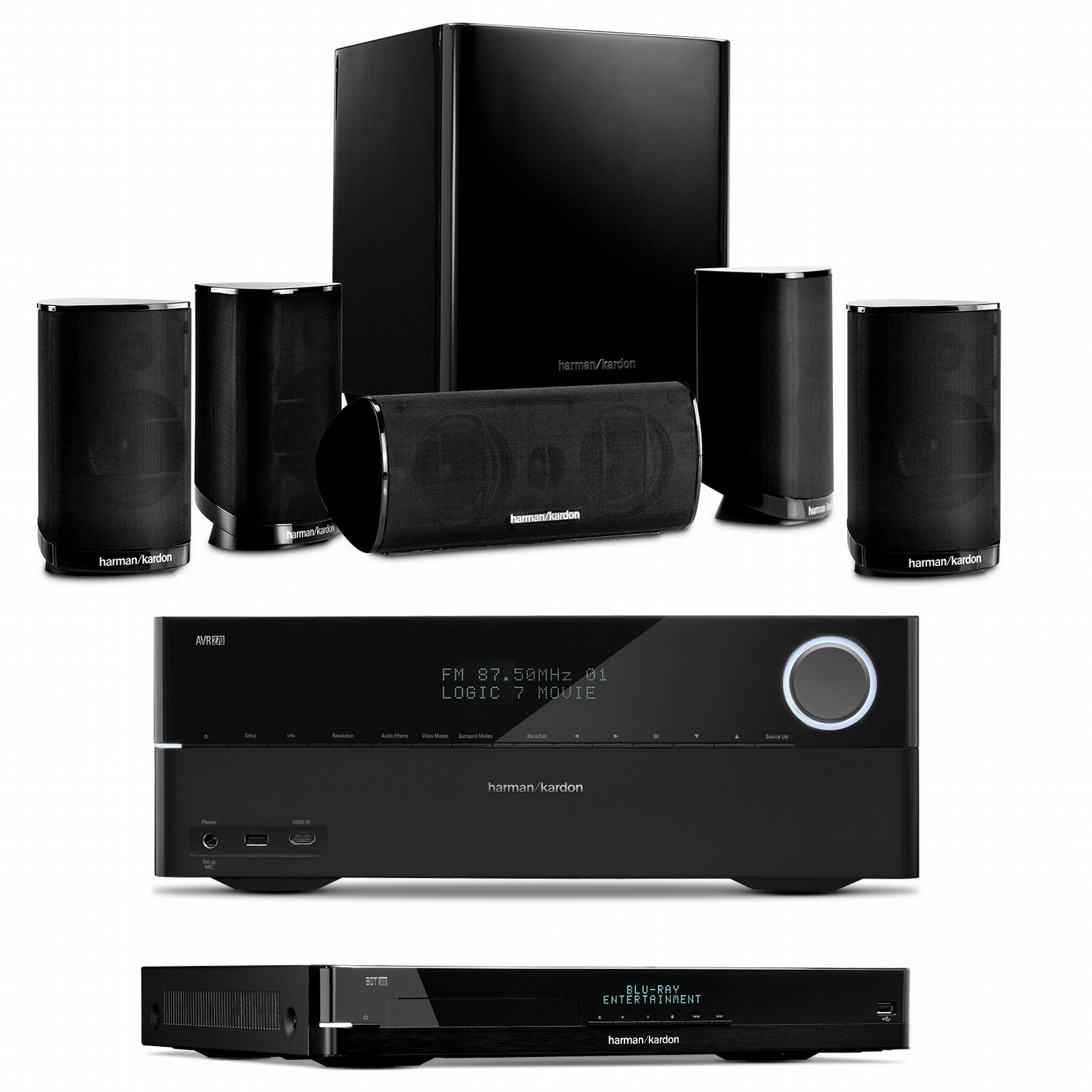 Harman/Kardon HD Power 2739. Тип проигрывателя оптический дисков: Blu-Ray player, Поддерживаемые типы дисков: BD, BD-R, BD-R DL, BD-RE, BD-RE DL, CD-R, CD-RW, DVD+R, DVD+RW, DVD-R, DVD-RW, Форматы дисков (воспроизведение): Blu-Ray video, CD audio. Поддерживаемый видеоформат: DIVX, MPEG1, MPEG2. Выходные звуковые каналы: 5.1, Аудио декодеры: Dolby TrueHD, DTS-HD, Поддерживаемые форматы аудио: MP3, WMA. Поддерживаемые диапазоны радио: AM, FM. Чувствительность центральной колонки: 86 дБ, Волновое сопротивление центральной колонки: 8 Ом, Размер твитера центральной колонки: 1,27 см (0.5")
