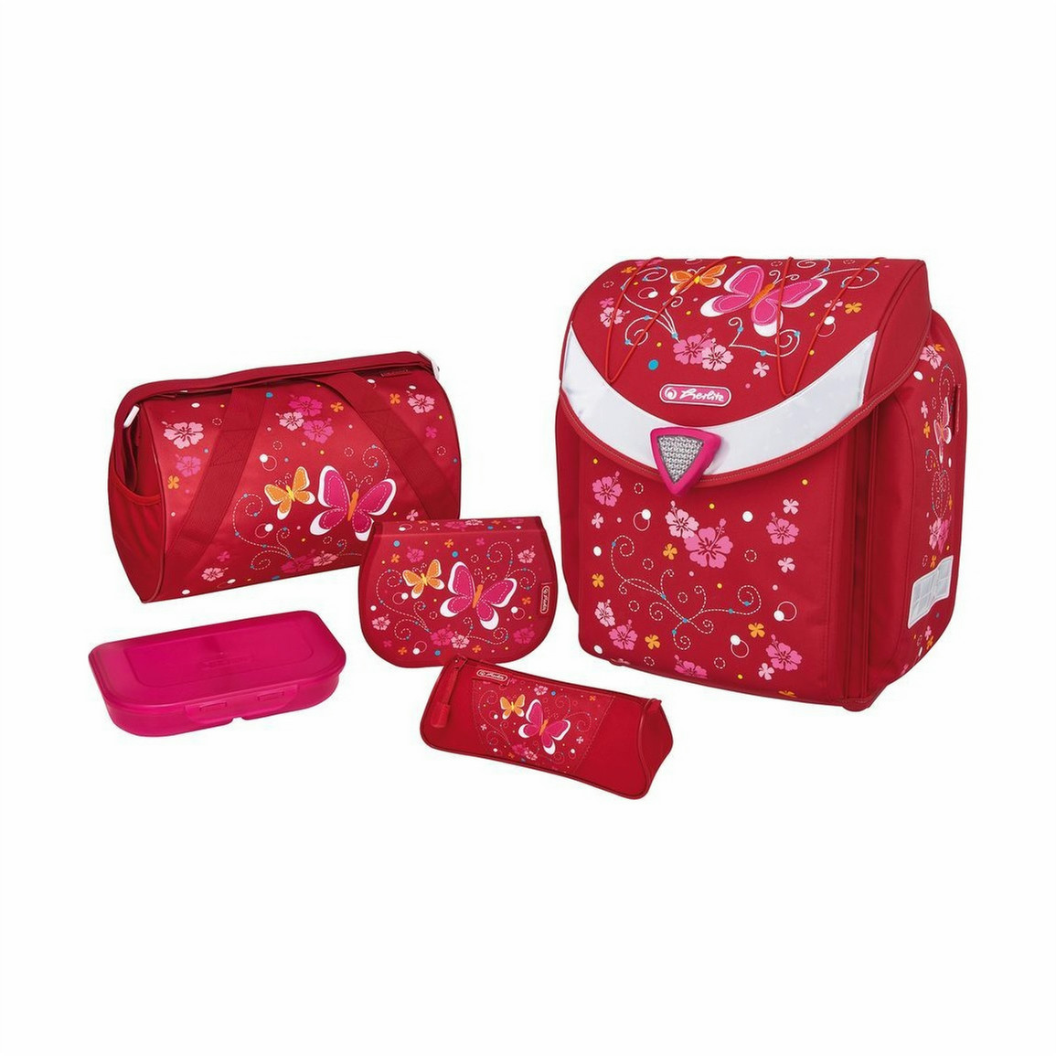 Herlitz Flexi Plus Butterfly. Школьный набор включает: Pencil case,Pencil pouch,School bag,Sport bag, Рекомендуемый пол: Девочка, Школьный возраст: Middle school. Ширина: 360 мм, Глубина: 220 мм, Высота: 390 мм