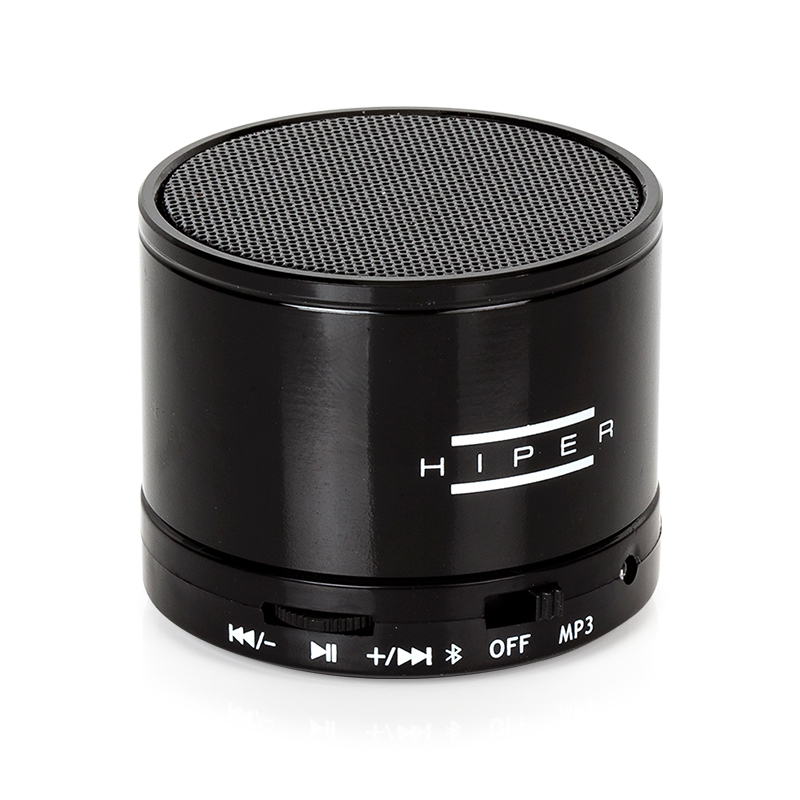 Hiper BT-10S. Чувствительность: 95 дБ. Технология подключения: Беспроводной, Интерфейс: Bluetooth, Радиус действия Bluetooth ®: 10 м. Тип продукта: Mono portable speaker, Цвет товара: Черный. Рекомендованное применение: Мобильный телефон / Смартфон. Тип источника питания: DC, Время работы батареи (макс): 6 ч