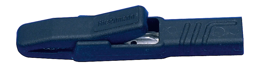 Crocodile clip with unbreakable insulation on all sides. Can clamp pins up to 9.5mm in diameter. The flat part of the tin- plated brass clamping jaw (fine wire area) ensures that thin wires can also be clamped securely. 4mm dia. socket connection and screw connection for cable diameters up to 1.5mm. Length: 80.5mm.