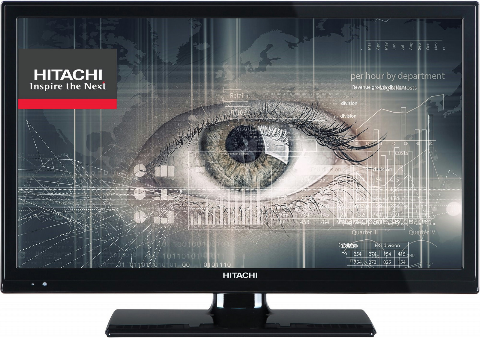 Hitachi 22HBC06. Диагональ экрана: 55,9 см (22"), Тип HD: Full HD, Разрешение экрана: 1920 x 1080 пикселей. Система аналогового формата сигнала: NTSC,PAL, Система цифрового формата сигнала: DVB-T, Тип тюнера: Аналоговый и цифровой. Номинальная RMS-мощность: 2,5 Вт, Технологии декодирования аудио: Dolby Digital Plus. Цвет товара: Черный. Поддерживаемый видеоформат: 3GP,ASF,AVI,FLV,MKV,MP4,MPEG,MPEG4,MPG,VOB,WMV, Поддерживаемые форматы аудио: MP3,WAV,WMA, Поддерживаемые форматы изображения: BMP,JPEG XR,JPG