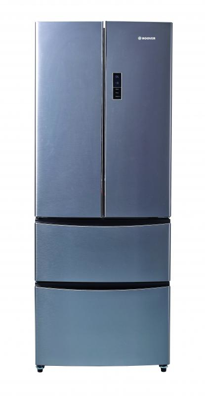 Hoover HMN 7182 IX. Тип корпуса: Отдельностоящий, Цвет товара: Нержавеющая сталь, Дизайн: Французская дверь. Суммарная максимальная емкость: 371 л, Тип климата: SN-T, Уровень шума: 43 дБ. Полезная емкость холодильника: 286 л. Полезная емкость морозильной камеры: 85 л, Размещение морозильной камеры: Низ, Вместимость морозильной камеры: 8 кг/24ча. Класс энергоэффективности: A, Потребление энергии: 0,888 кВт·ч/24ча, Годовое потребление энергии: 324 кВт·ч