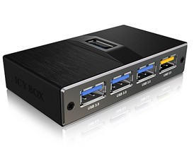 ICY BOX IB-AC611. типы подключения хаба: USB 3.0 (3.1 Gen 1) Type-A. Светодиодные индикаторы: Жесткий диск, Напряжение, Цвет товара: Черный, Материал: Алюминиевый. Поставляемые кабели: USB