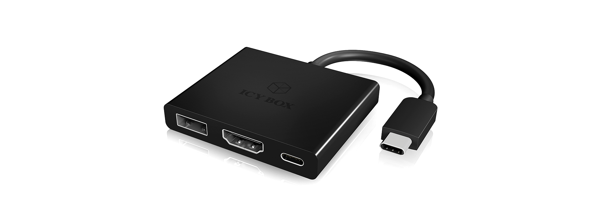 ICY BOX IB-DK4031-CPD. Основной интерфейс: USB 3.0 (3.1 Gen 1) Type-C, типы подключения хаба: HDMI, USB 2.0, USB 3.1 (3.1 Gen 2) Type-C. Тип источника питания: USB. Цвет товара: Черный, Материал: ABS синтетика. Поддерживаемые операционные системы Windows: Windows 10 Education, Windows 10 Education x64, Windows 10 Enterprise, Windows 10 Enterprise x64, Wi, Поддерживаемые операционные системы Mac: Mac OS X 10.11 El Capitan. Ширина: 50 мм, Глубина: 58 мм, Высота: 10 мм