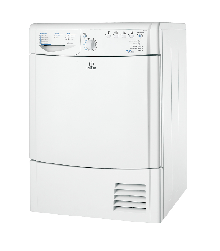 Indesit IDCA 735 B. Тип корпуса: Отдельностоящий, Тип загрузки: Фронтальная загрузка, Цвет товара: Белый. Емкость барабана: 7 кг, Продолжительность цикла: 140 мин. Программируемое время старта (макс.): 9 ч. Класс энергоэффективности: B, Потребление энергии: 3,93 кВт·ч. Ширина: 595 мм, Глубина: 584 мм, Высота: 850 мм