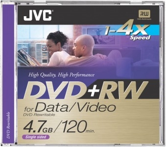 JVC VP-W 47 DEJ. Емкость до сжатия: 4,7 ГБ, Тип: DVD+RW, Время записи: 120 мин. Тип упаковки: Футляр