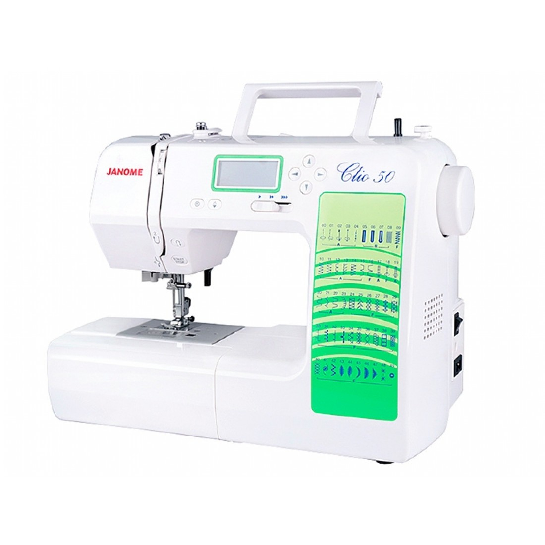 Компьютерная швейная машина Janome Clio 50 имеет 50 швейных операций: рабочие строчки, трикотажные строчки, декоративные строчки, петля-автомат 3 вида. Она простая в использовании и подойдет для пользователей любого уровня. Горизонтальный челнок, встроенный нитевдеватель, кнопка старт/стоп, регулятор скорости, автоматическая закрепка, кнопка позиционирования иглы, все сделано специально, чтобы облегчить и ускорить процесс шитья.