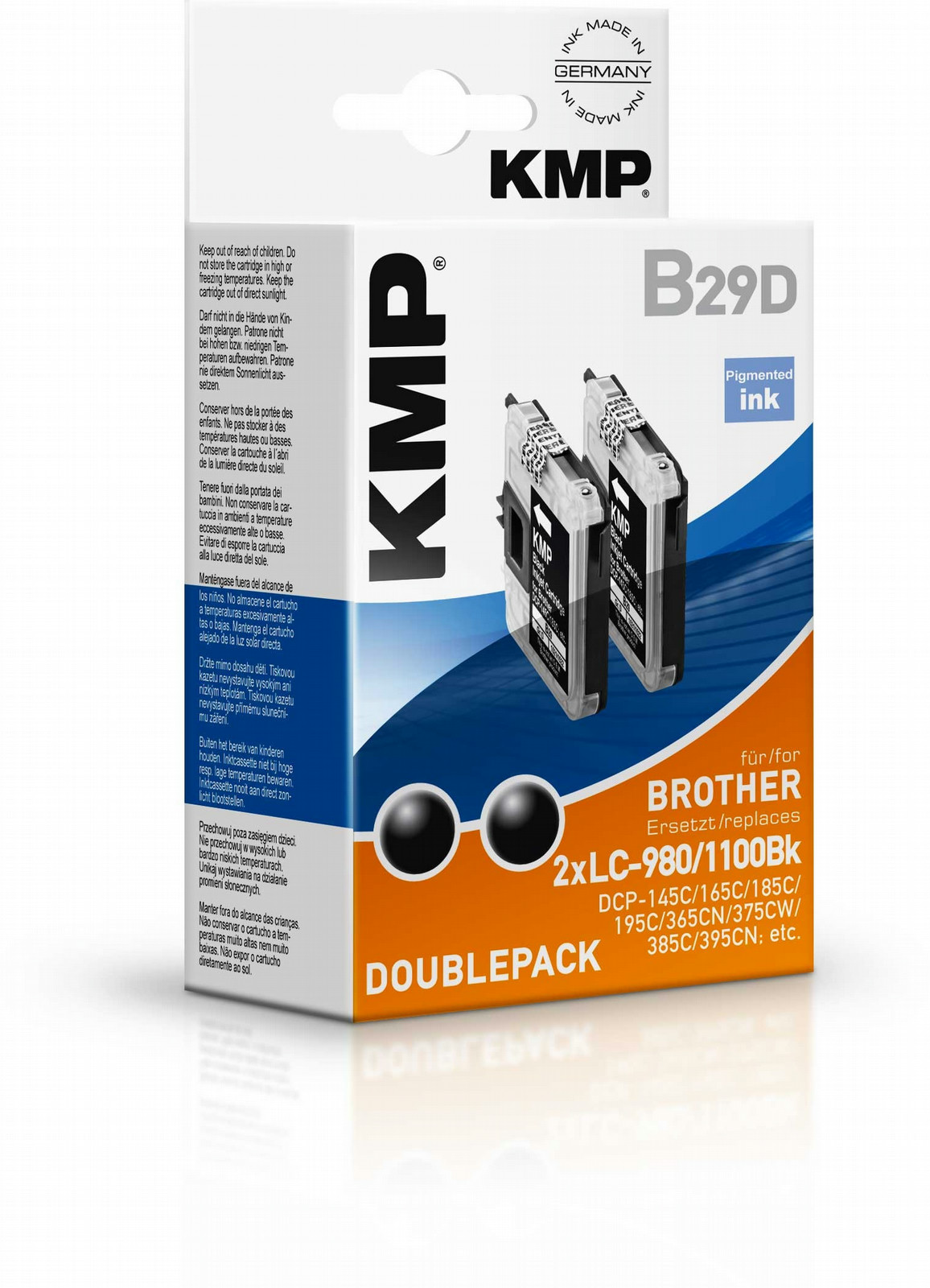 KMP B29D. Емкость картриджа: Super high, Цвета печати: Пигментный черный, Совместимые продукты: Brother DCP-145C/DCP-165C/DCP-185C/DCP-195C/DCP-365CN/DCP-375CW/DCP-385C/DCP-395CN/DCP-585CW/DCP-669