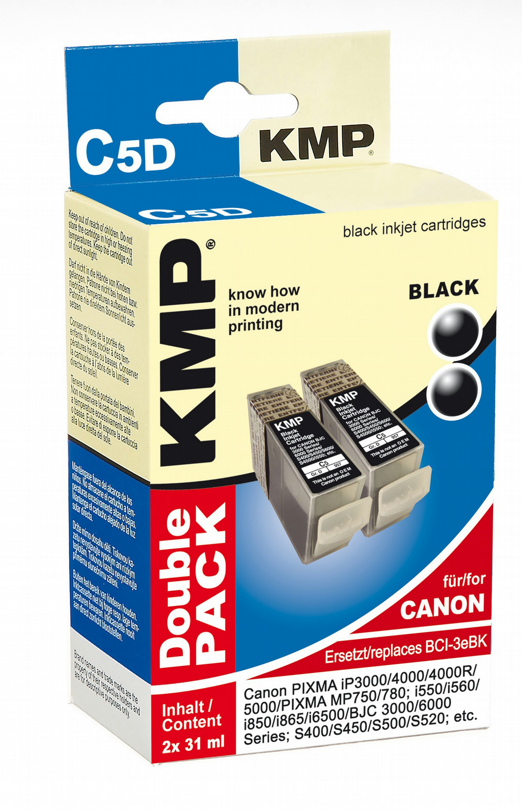 KMP C5D. Цвета печати: Черный, Примечание о количестве печатных страниц: ISO/IEC 24711, Совместимые продукты: Canon BJC 3000, BJC 3010, BJC 6000, BJC 6100, BJC 6200, BJC 6200 S, BJC 6500, I 550, I 550 X, I 6100