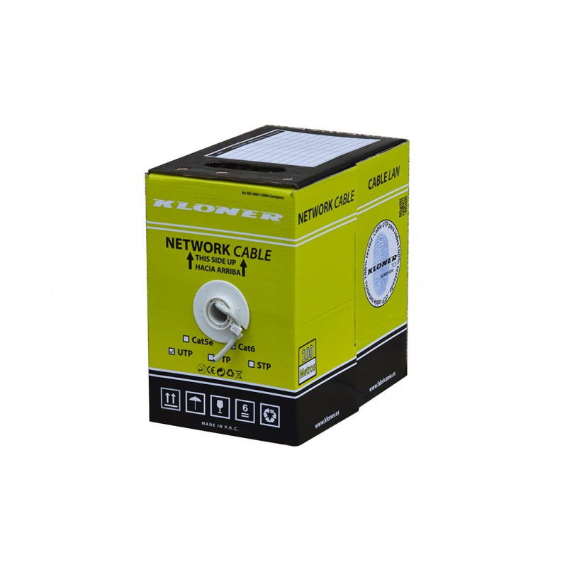 Kloner KCL6-100. Длина кабеля: 100 м, Стандарт кабеля: Cat6, Свивка кабеля: 10/100/1000Base-T(X). Тип упаковки: Коробка