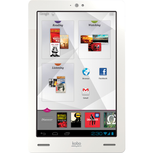 Kobo ARC 32GB. Диагональ: 17,8 см (7"), Разрешение экрана: 1280 x 800 пикселей, Форматное соотношение: 16:10. Подерживаемые форматы документов: ePub, Поддерживаемые форматы аудио: 3GA,AAC,AAC+,FLAC,M4A,MIDI,MP3,MP4,OGG,WAV, Поддерживаемые форматы изображения: BMP,GIF,JPG,PNG. Емкость встроенной памяти: 32 ГБ, Внутренняя память RAM: 1024 МБ. Тактовая частота процессора: 1500 МГц, Встроенный процессор: TI OMAP 4470. Порт подключения наушников: 3,5 мм, Тип интерфейса: USB 2.0, Wi-Fi стандартов: 802.11b,802.11g,802.11n