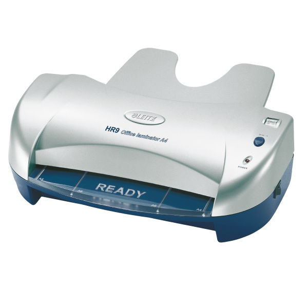 Leitz HR9. Скорость ламинирования: 650 мм/мин, Максимальная ширина ламинирования: 23 см, Время предварительного нагрева: 5 мин. Вес: 4,03 кг. Требования к питанию: 220/240 V AC, Система подогрева: 4 roller hot roller, Размеры (ШхГхВ): 155 x 410 x 265 мм