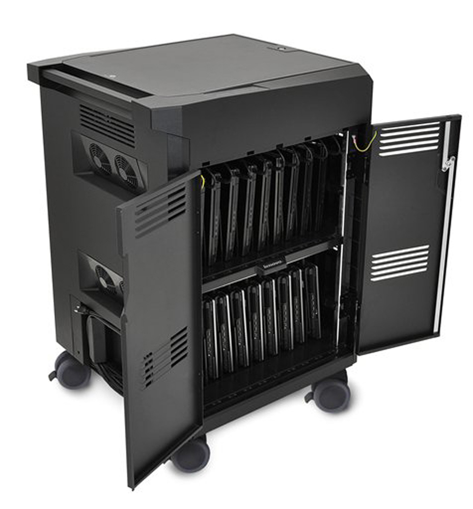 Тележка имеет 1 вентилятор с 4 вентиляционные отверстия, чтобы приборы не перегревались во время зарядки