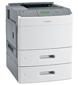 Lexmark T652dtn. Максимальное разрешение: 1200 x 1200 dpi, Месячный рабочий цикл (макс): 225000 стр/мес, Стандартные языки принтера: Microsoft XPS,PDF 1.6,PPDS,XHTML. Скорость печати (ч/б, обычное кач., A4/US Letter): 48 стр/мин, Время выхода первой страницы (ч/б, норм. качество): 7,5 сек. Стандартная вместимость на входе: 1200 листов, Маскимальная вместимость на входе: 4300 листов, Вместимость универсального лотка: 100 листов. Стандартная вместимость на выходе: 350 листов. Максимальный размер бумаги ISO A-формата: A4, Типы носителей стандартного лотка: Конверты, Этикетки, Обычная бумага, Прозрачные, ISO A-форматы (А0…А9): A4,A5,A6