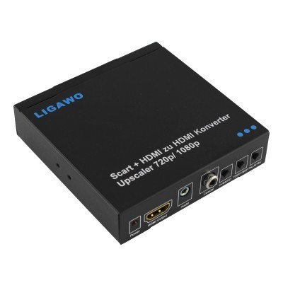 Ligawo Scart/HDMI - HDMI. Рабочее напряжение: 5 В, Рабочий ток: 1 А. Цвет товара: Черный. Ширина: 100 мм, Глубина: 105 мм, Высота: 23 мм