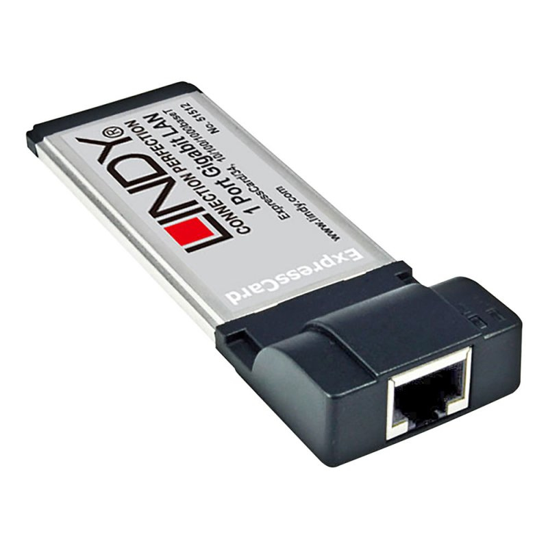 Lindy 51512. Технология подключения: Проводная, Основной интерфейс: ExpressCard, Интерфейс: Ethernet. Скорость передачи данных (макс): 1000 Мбит/с. Чипсет: RTL8111D, Скорость передачи данных Ethernet LAN: 10,100,1000 Мбит/с, Тип Ethernet интерфейса: Gigabit Ethernet. Ширина: 116 мм, Глубина: 33 мм, Высота: 15 мм