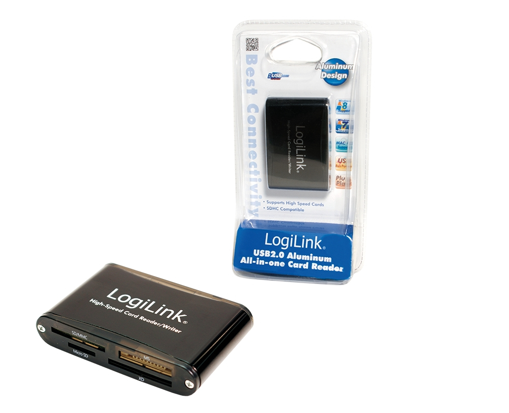 LogiLink Cardreader USB 2.0. Тип интерфейса: USB 2.0. Скорость передачи данных: 480 Мбит/с. Цвет товара: Черный. Тип подачи питания: DC