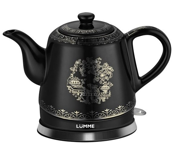 Корпус чайника выполнен из прочной керамики черного цвета, устойчивой к перепадам температуры.