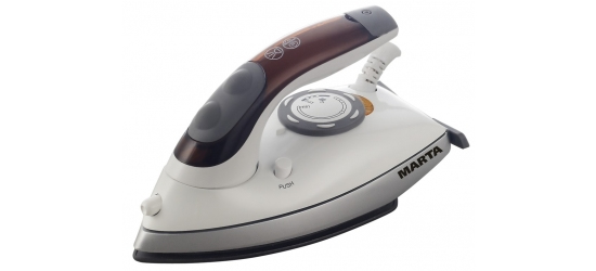Утюг с двумя функциональными режимами и рабочей поверхностью из тефлона. Складная ручка для удобства путешествий.