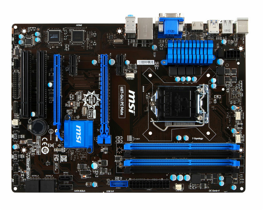 MSI H87-G41 PC Mate. Поддерживаемые типы памяти: DDR3-SDRAM, Тип слотов памяти: DIMM, Поддерживаемые частоты памяти: 1066,1333,1600 МГц. Семейство процессоров: Intel, Совместимые серии процессоров: Celeron,Core i3,Core i5,Core i7,Pentium, Сокет процессора: LGA 1150 (Socket H3). Поддерживаемые интерфейсы носителя: Serial ATA III. Контроллер LAN: Realtek RTL8111G, Тип Ethernet интерфейса: Gigabit Ethernet. Комплектующие для: ПК, Семейство чипсета материнской платы: Intel, Чипсет материнской платы: Intel H87