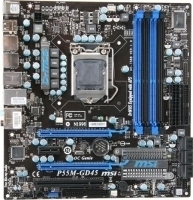 MSI P55M-GD45. Поддерживаемые типы памяти: DDR3-SDRAM, Тип слотов памяти: DIMM, Поддерживаемые частоты памяти: 1066,1333,1600,2000,2133 МГц. Семейство процессоров: Intel, Совместимые серии процессоров: Core i5,Core i7, Сокет процессора: LGA 1156 (Socket H). Поддерживаемые интерфейсы носителя: Serial ATA II. Характеристики сети: 10/100/1000 Mbit, Контроллер LAN: Realtek RTL8111D(L), Тип Ethernet интерфейса: Fast Ethernet,Gigabit Ethernet. Комплектующие для: ПК, Семейство чипсета материнской платы: Intel, Чипсет материнской платы: Intel P55