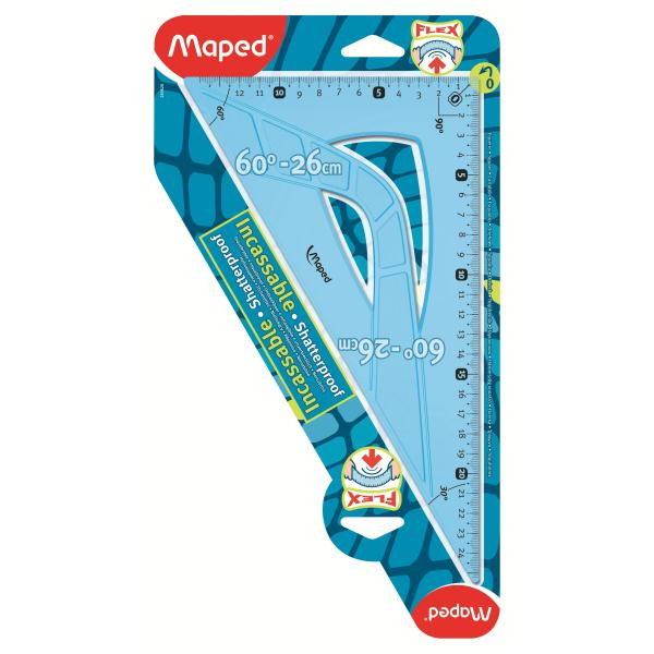 Maped Flex. Тип: 60° triangle, Материал: Пластик, Цвет товара: Синий, Полупрозрачный. Длина стороны: 26 см. Тип упаковки: Подвесной мешок