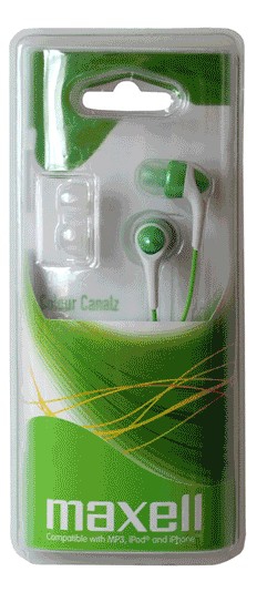 Maxell Colour Canalz Headphones Green. Тип гарнитуры: Стереофонический, Цвет товара: Синий, Пурпурный. Технология подключения: Проводная. Длина кабеля: 1,2 м. Частота наушников: 20 - 23000 Гц, Чувствительность наушников: 100 дБ, Полное сопротивление: 32 Ом. Совместимость: Мульти, Максимальная входная мощность: 0,05 Вт