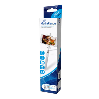 MediaRange Universal Selfie Stick. Подходит для: Смартфон, Цвет товара: Серый, Белый, Материал: Алюминиевый, Пластик. Вес: 110 г, Длина (макс): 88 см