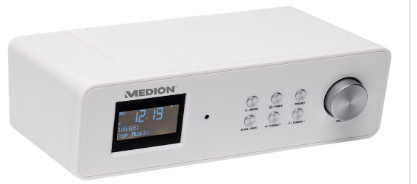 Medion E66314. Тип тюнера: Analog & digital, Поддерживаемые диапазоны радио: AM, DAB+, FM. Номинальная RMS-мощность: 5,6 Вт, Режимы эквалайзера: Классический, Плоский, Funk, Нормальный, Поп, Rap, Рок. Ширина: 238 мм, Глубина: 137 мм, Высота: 72 мм